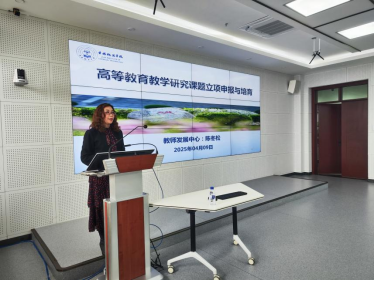 首先,教师发展中心副主任陈冬松以“高等教育教学研究课题立项申报与培育”为题开展培训。她凭借丰富的经验,深入浅出地介绍了教学研究课题立项的流程、申报要点以及如何培育高质量的课题。她从选题的确定,研究方案的设计,到项目申报书的撰写等环节,进行了深入细致地讲解,为新教师申报高质量教学研究课题、开展教改领域研究奠定基础。